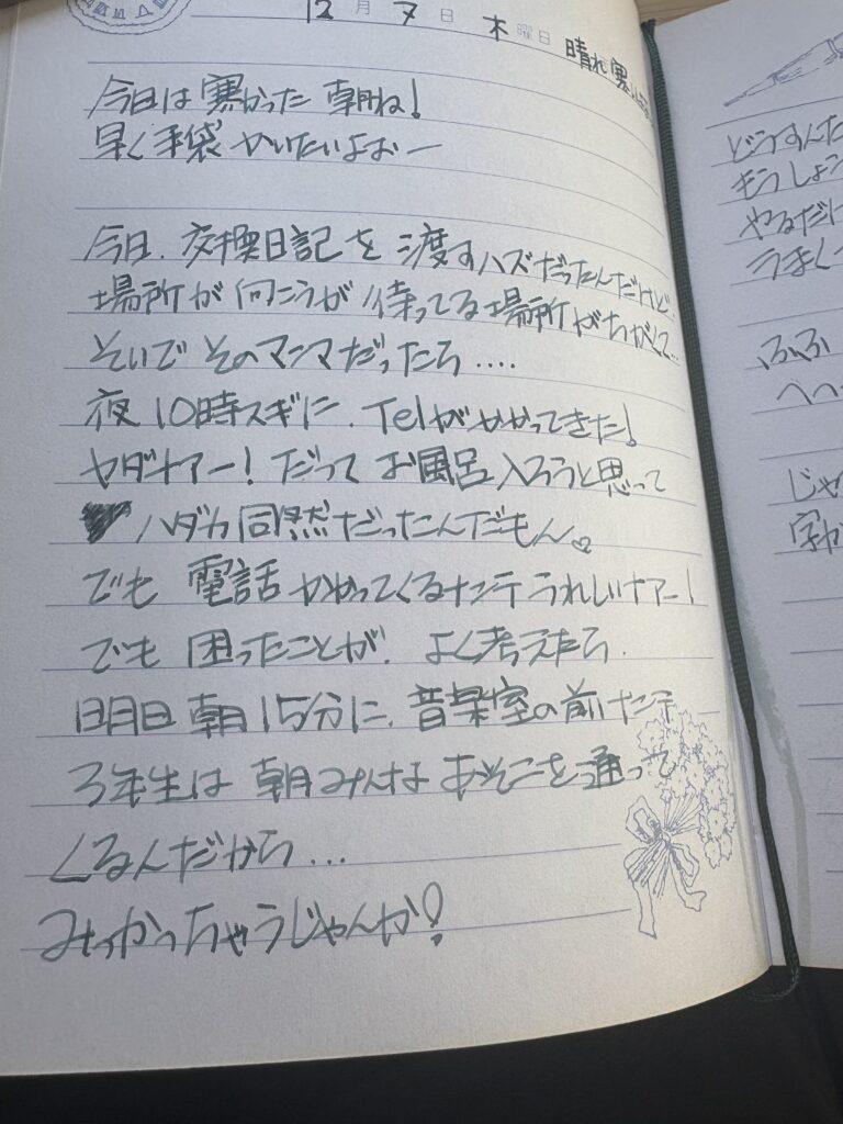 帰国後、仲の良い男友達と交換日記を始めることになったらしい。